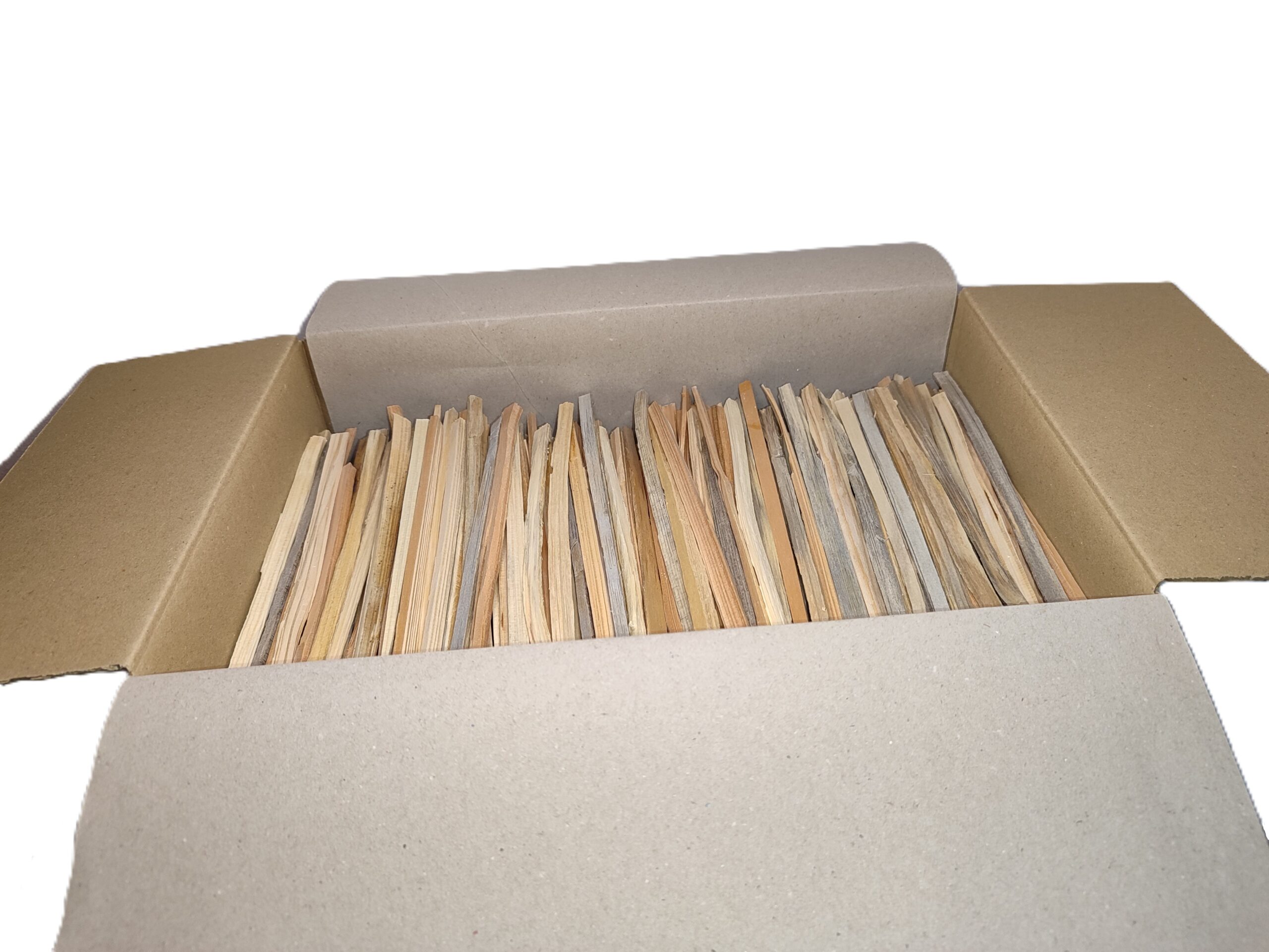 Bois (résineux)100 % naturel issu du Livradois‑Forez (Puy‑de‑Dôme). Séché naturellement, fendu très finement, longueure 15cm. Emballage carton et papier de callage recyclables.